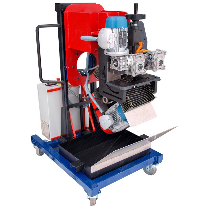 Ultramill Roto is designed for straight edge bevelling but accepts some curved edges as well. It is unique bevelling system achieves a mirror finish as the machine is moving along the plate at variable speeds by means of two propelling wheels. The machine is equipped with a sensor that stops the rotation of the milling tool when it reaches the end of the plate.